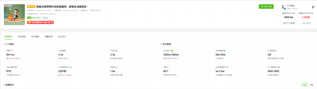 (张兰和东方甄选11月24日直播间数据对比)