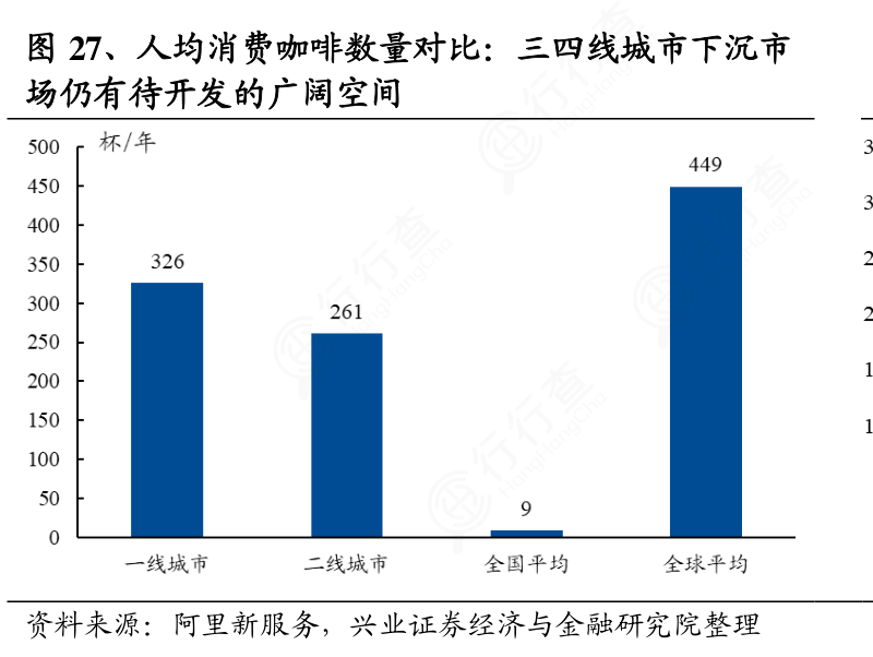人均消费咖啡数量对比:三四线城市空间广阔