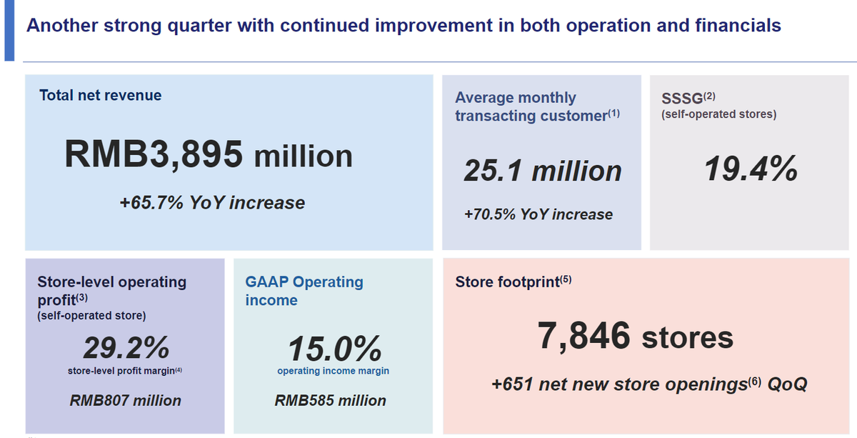 · 单店销售额增长:同店销售增长率为19.4%,自营门店利润率29.2%。