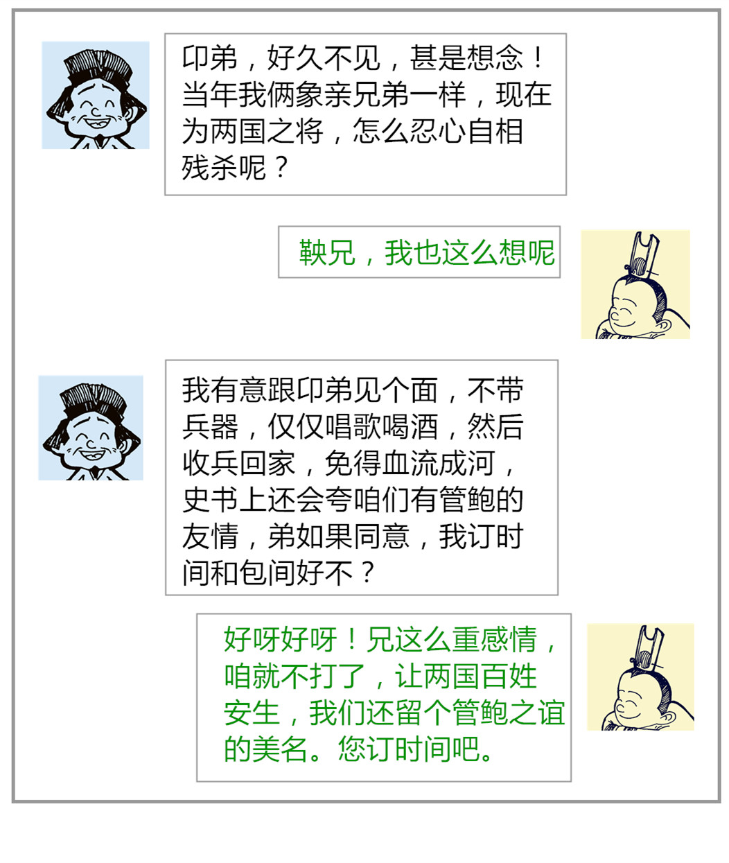 魏国领兵的将军是公子卬,在商鞅入秦之前,俩人有着不错的交情。到了战场,商鞅就给这位好友发微信: