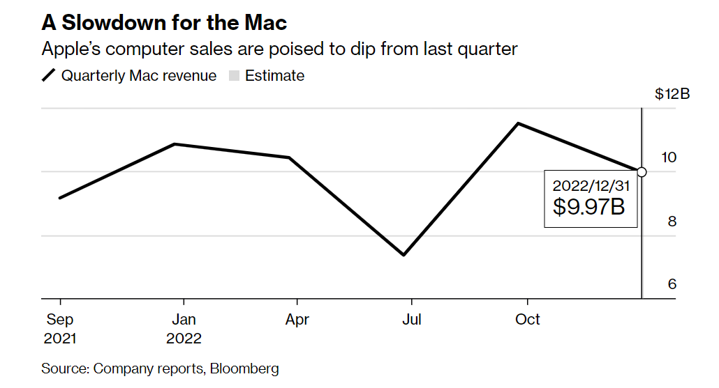 ▲苹果Mac电脑近期销售情况,来源:彭博社