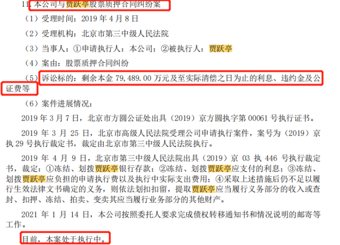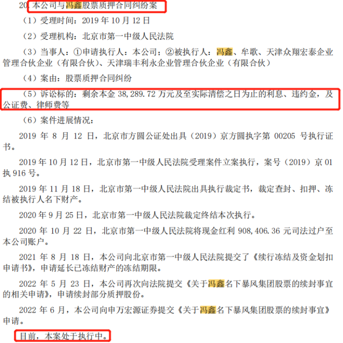 华融证券披露的诉讼公告显示,其与贾跃亭涉诉金额高达7.9亿元;与冯鑫等人的股票质押合同纠纷涉诉金额为3.83亿元。截至2022年上半年,两起诉讼案件均处于执行中。