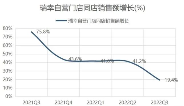 财报显示,第三季度自营店的同店销售额增长为19.4%,而2021年同期为75.8%,今年前两个季度这个数据也保持在40%以上。