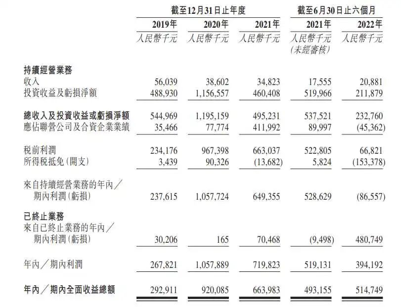 此次更新的聆讯后资料集中,天图投资公布了2022年上半年业绩数据。截至2022年6月30日,天图投资录得收入0.2亿元,投资收益或亏损净额为2.12亿元。