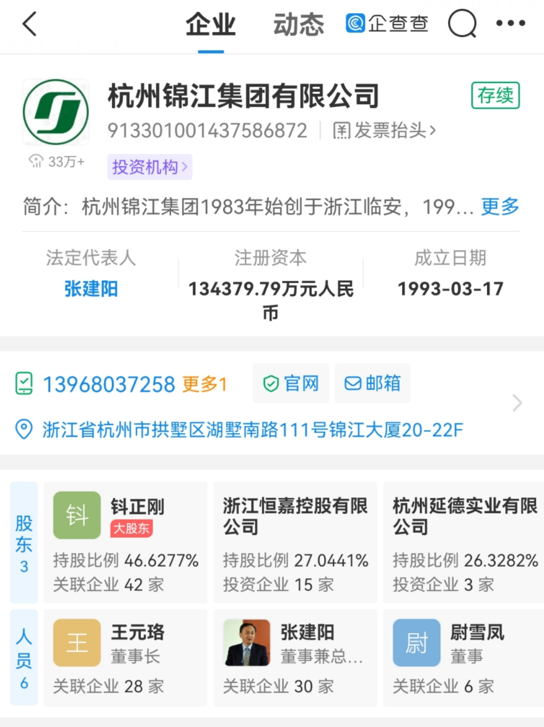 公开资料显示,杭州锦江集团创立于1983年,主营业务包括环保能源、有色金属、化工新材料,集贸易、金融等等。2020年,集团总资产超过700亿元,营收超过780亿元。