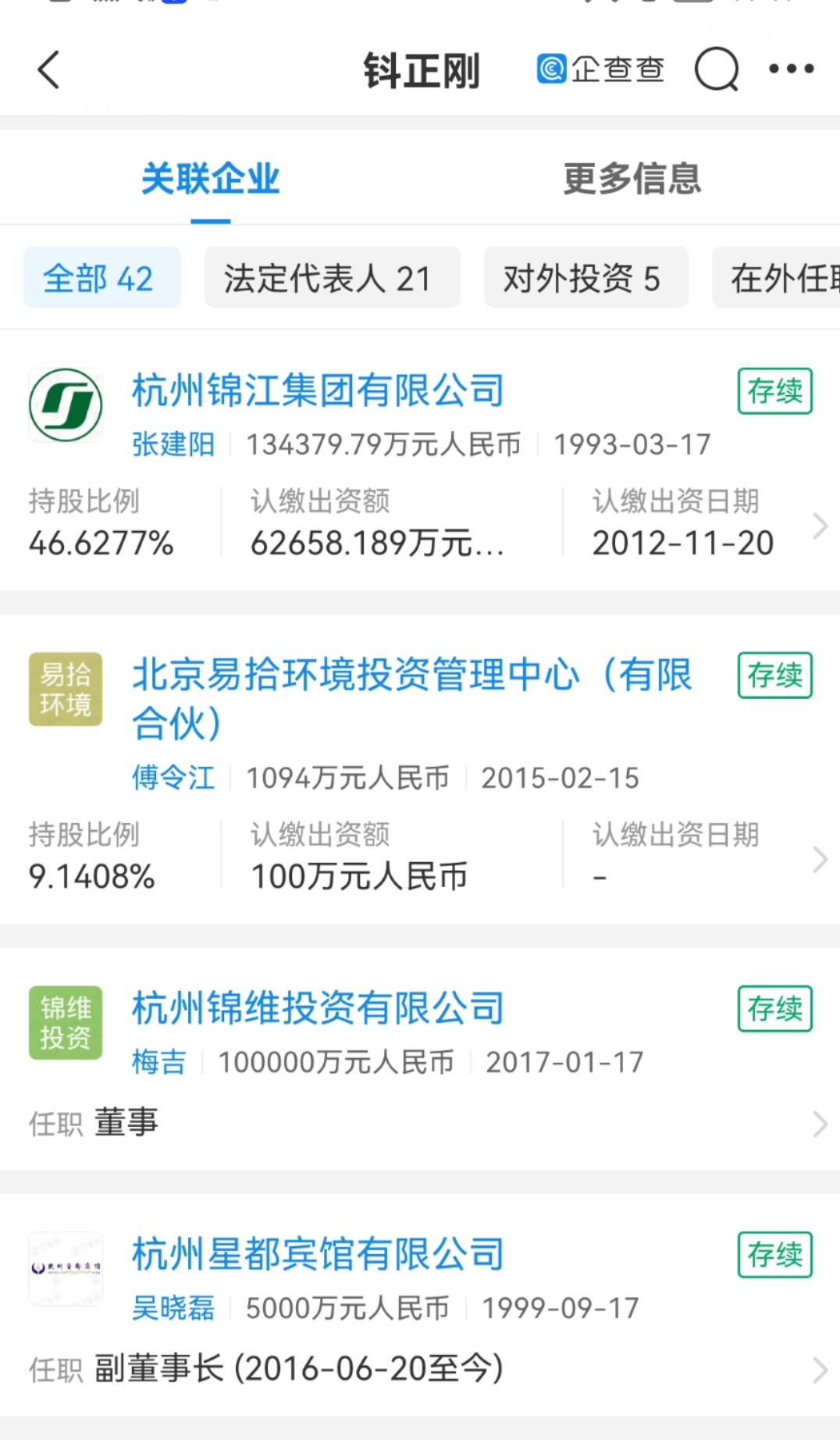 工商信息显示,凯闻投资实控人童建中同时也在多个锦江系公司担任要职,与“锦江系”深度绑定。另据杭州正才控股2019年公司债募集说明书,凯闻投资大股东KARVIN LIMITED,实为正才控股子公司。
