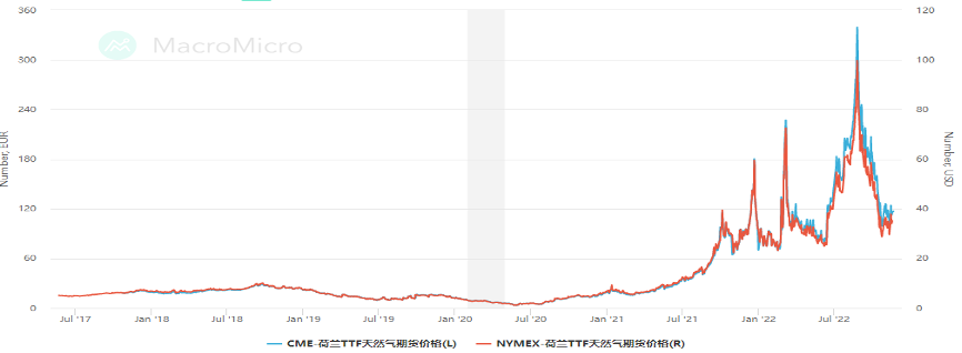 其次,欧洲要面临能源价格问题。在俄气供给收缩的情况下,被视为“欧洲天然气价格风向标” TTF基准的荷兰天然气期货屡创历史新高。与此同时,燃气发电虽然只占欧洲电力供应的20%,但由于欧洲特殊的电价体系,电价也被大幅推升。