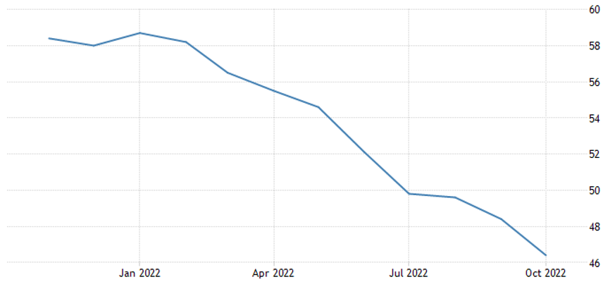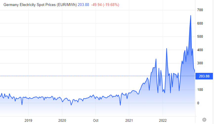 能源安全危机下,欧洲经济发展举步维艰。欧元区制造业PMI指数一路下滑至46,掉入衰退区间。在高昂的能源成本下,高端制造、基础工业等被迫削减生产,甚至面临倒闭。尤其是能源密集型产业,如德国约50%的铝和锌产能因电力危机而被迫停产。