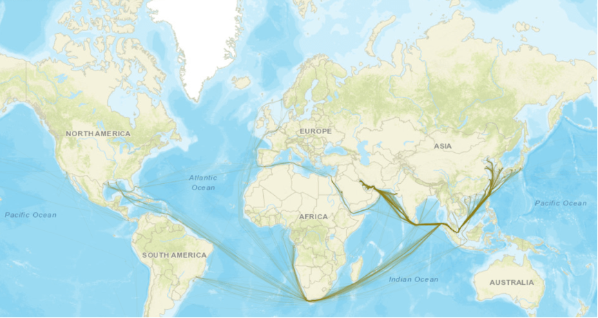 中国主要通过四条海上运输航线进口石油,中东航线、东南亚航线、拉美航线和非洲航线,其中运量最大的是中东航线。马六甲海峡是中国最重要的石油进口运输通道,超过90%的海运石油需途经于此。