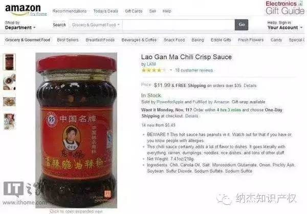 2012年7月,美国奢侈品闪购电商Gilt更是将老干妈誉之为“全球最顶级的辣酱”。一瓶280克的老干妈辣酱,中国卖7.9元,美国亚马逊限时抢购价39.5元(合5.98美元)