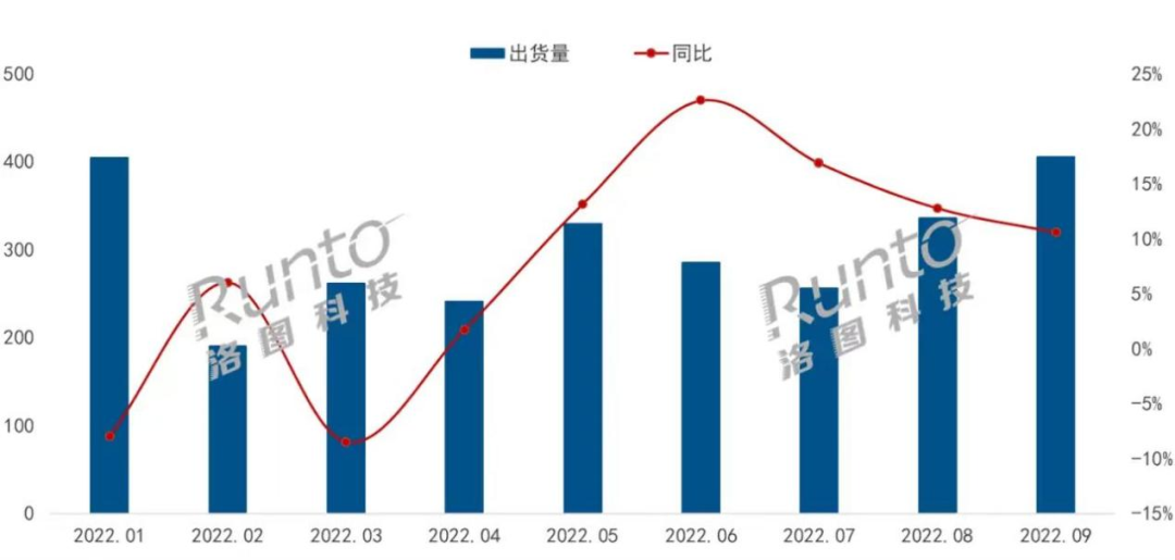 由于疫情影响,家庭场景回归主流市场,如今支撑OTT赛道高增长的是智能电视。根据洛图科技发布的《中国电视市场品牌出货月度快报》数据显示,2022年9月,中国电视市场品牌整机出货量达到409万台,同比增长11%,环比增长22%。