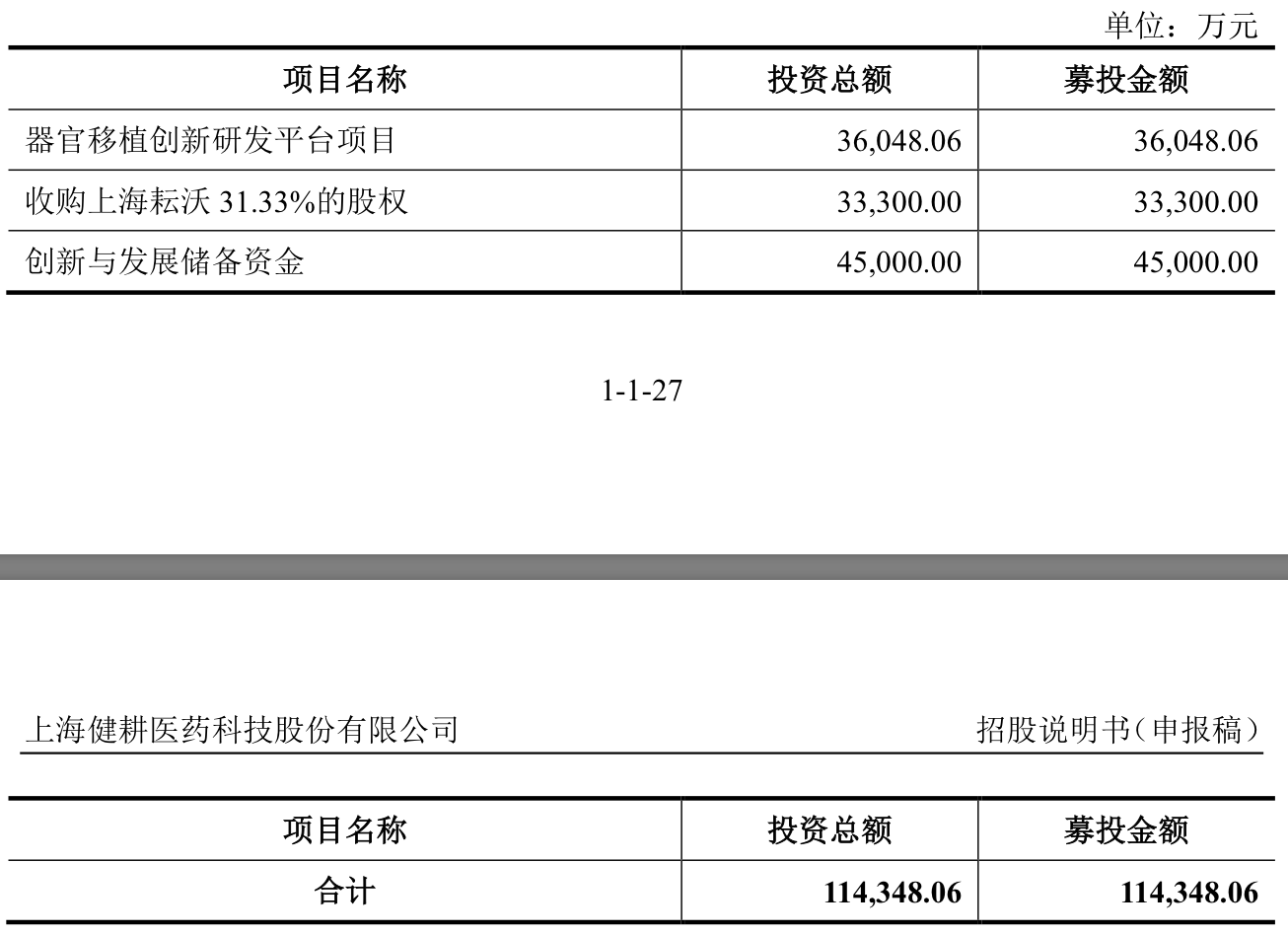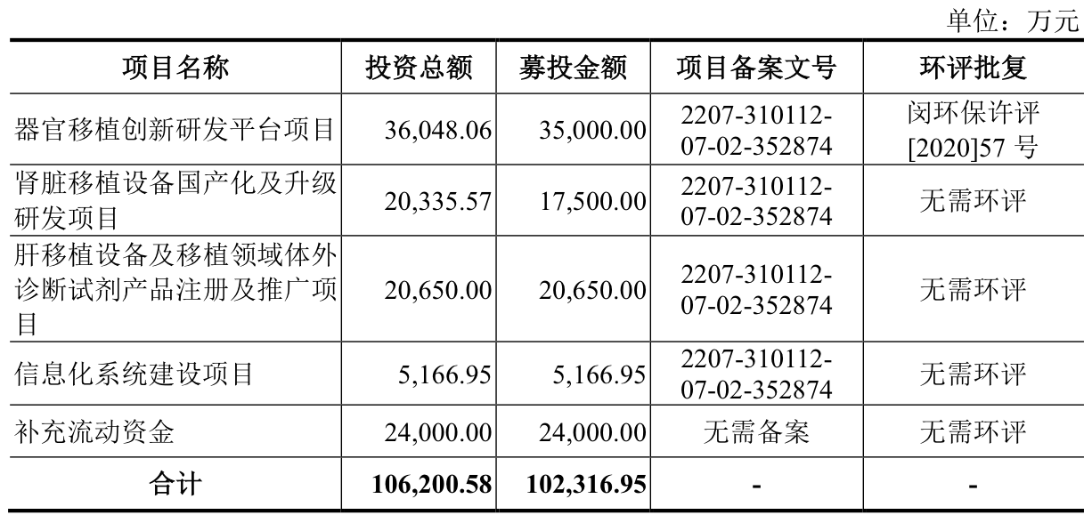 顺便一提,二闯科创板的健耕医药将募资计划大刀阔斧地修改,共有5个项目,除了保留了“器官移植创新研发平台项目”之外,其余都是新项目,金额也再提升到了10.23亿元。