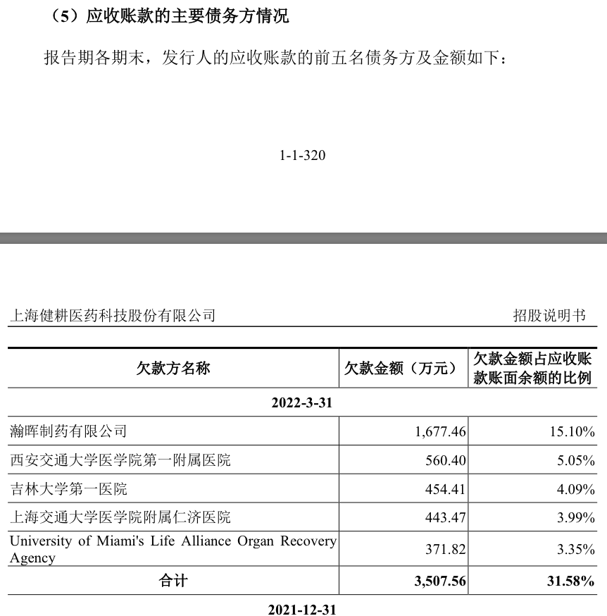 需要指出的是,截至2022年3月31日止,健耕医药财务报表中应收账款账面余额为1.07亿元,金额也不小。