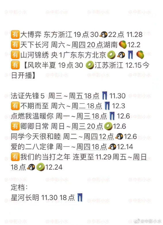 (图源微博@中影小水 11月27日追剧日历)