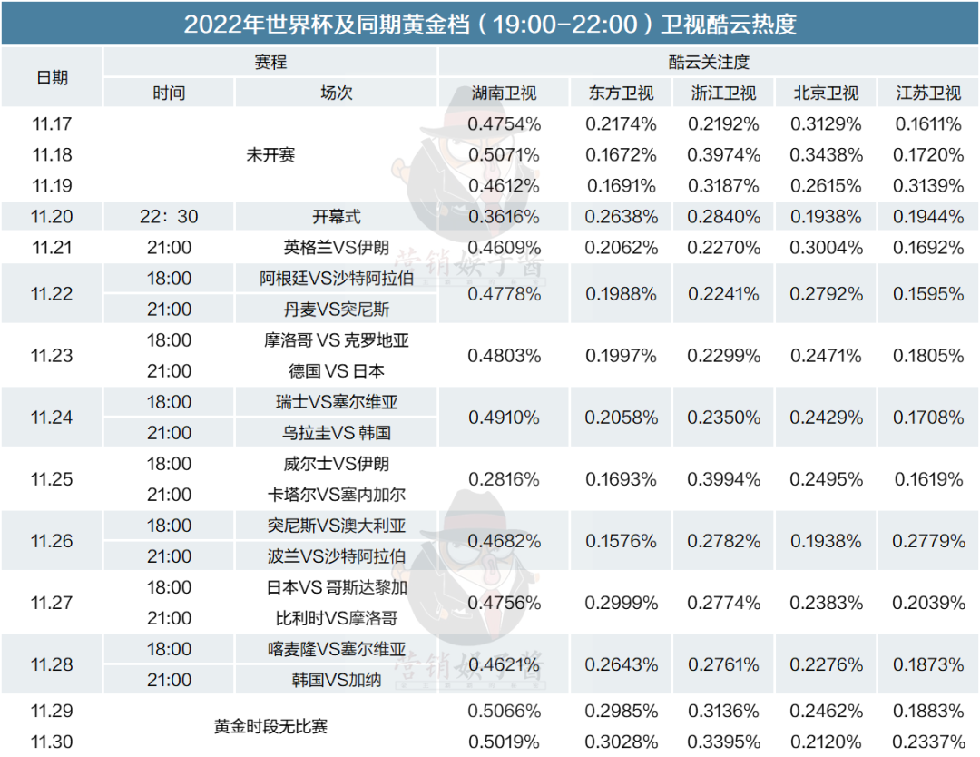 其中18点、21点的两场比赛,可谓正面撞档黄金档。而自29日开始,到12月3日1/8决赛,每日比赛场次变更为3点、23点两场,与黄金档时间不再重合。