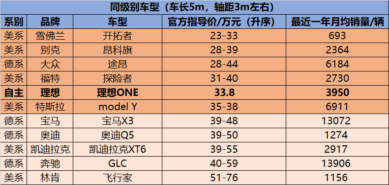 东吴证券曾梳理车长5M、轴距3M的同级别汽车,理想价格处于中下游,但是配置和智能化的内容,要远比其他品牌来的丰富。