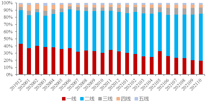 东吴证券在2021年底曾经做过一个统计,发现理想汽车在二线城市的销售量越来越高。