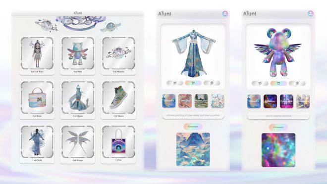 图/AVAR产品Aiuni中AI生成的数字商品;来源/胡雅婷提供