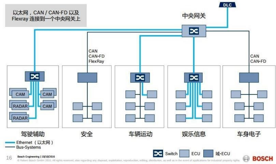 在智能座舱中基础的元件是ECU (Electronic Control Unit) ,即被称为车载电脑的电子控制单元。在智能座舱和自动驾驶技术发展的趋势下,一部车往往需要多达100-200个ECU来控制。为了解决分布式EEA的问题,汽车产业开始逐渐把很多彼此分离但功能相似的ECU功能集成整合到一个比ECU性能更强的处理器硬件平台上,这就是汽车“域控制器(Domain Control Unit,DCU)”。根据不同的功能分区,汽车座舱部分的域控制器被称之为座舱域控制器。