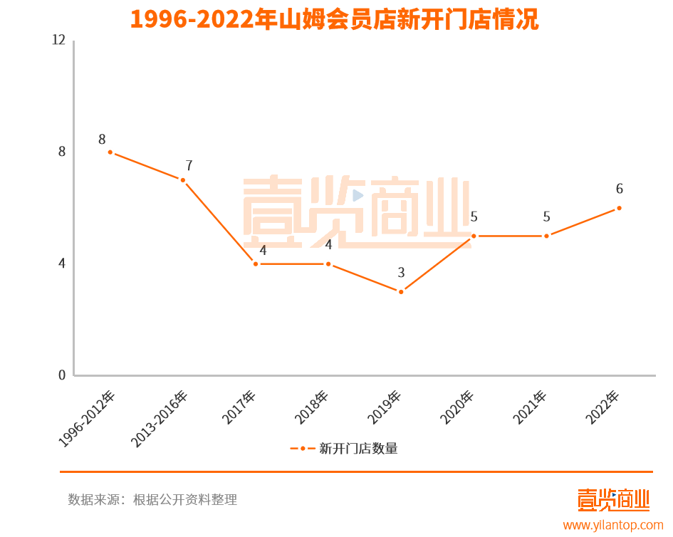 1996年,沃尔玛进入中国市场,并于同年开出第一家沃尔玛购物广场和第一家山姆会员店。随后,沃尔玛开始在中国快速扩张,截至2012年底,共开出280家大卖场门店。但同时,因为经济发展、物业等多方面原因,山姆会员店则一直扩张缓慢,同期仅开出8家门店。