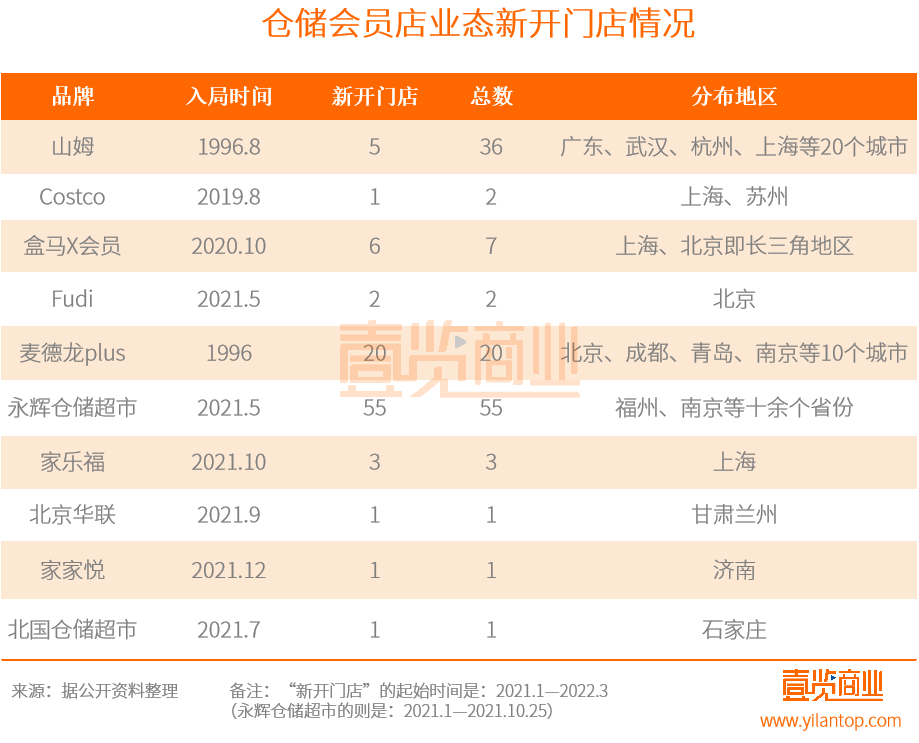 这一年,除山姆、Costco等外资企业依旧加速扩张外,包括永辉超市、Fudi、家家悦、人人乐等多家本土实体零售企业也纷纷入局。据壹览商业不完全统计,从2021年到2022年3月底,全国新开业仓储会员店(仓储店)超过100家。