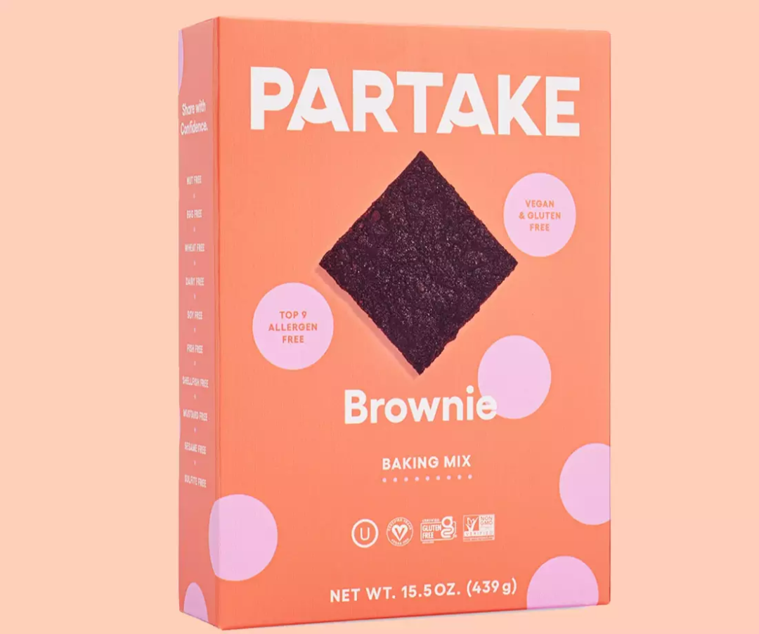 美国Partake Foods于2021年曾推出了一款布朗尼蛋糕预拌粉,由碱化可可、燕麦奶和海盐制成。主打无麸质,并且不含其他八大过敏原(小麦、坚果、花生、牛奶、鸡蛋、大豆、鱼、芝麻和贝类),以及非转基因食材调配而成,完美满足了容易以上食材过敏的消费者群体需求。消费者在使用时只需添加水和油,放入烤箱烤制即可。