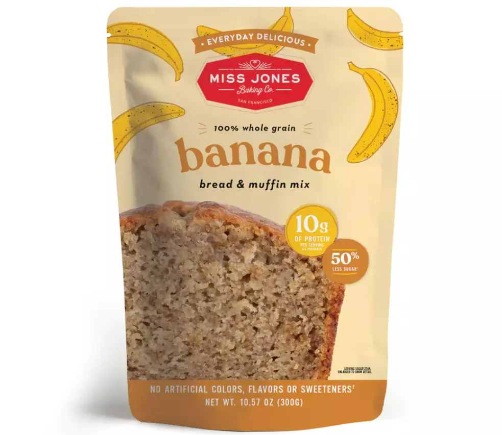 美国烘焙品牌Miss Jones曾推出过一系列低糖烘焙预拌粉,由100%的全谷物和独家研发的糖分混合制成的——据该公司介绍,这是一种糖、菊苣根、木薯和猕猴桃的混合物,相较于其他系列能够减少50%的糖分,并且不含任何人工甜味剂或糖醇。