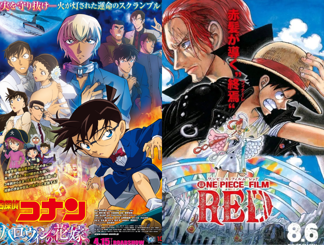 从上个月的《名侦探柯南:万圣节的新娘》(以下简称《万圣节的新娘》)到这一部《红发歌姬》,再到海外今日上映的《灌篮高手》,日漫剧场版今年的存在感十足。自《鬼灭之刃》《咒术回战》等新番的剧场版在全球取得广泛成功之后,老日漫IP的剧场版终于也流露出重新焕发活力的讯号,突破系列最佳成绩。