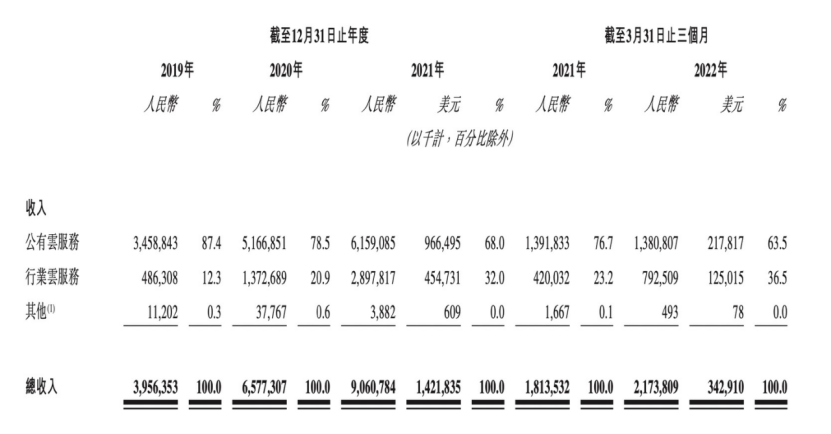 具体来看,金山云的收入主要由公有云服务、行业云服务两部分组成。在今年递港招股书中,金山云指出,二者共用一套底层的公有云技术能力,但在客户类型、收入模式、部署方式上有所不同。