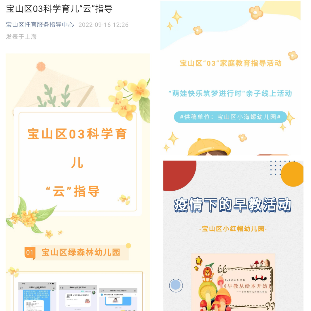 这只是宝山区托有善育幼儿园中的一家。近年来,宝山始终践行“求木之长者,必固其根本”的理念,将幼儿教育作为儿童成才教育的起点,推出实、特、新、活的幼儿特色教育。友谊路幼儿园传承数学多元教育成果,创新数学学习多种形式,打造幼儿教育的独特品牌。小海螺幼儿园开发适于幼儿室内运动的“小轻软”组合材料,支持幼儿“充分运动、智慧运动、享受运动”。行知实验幼儿园充分利用日常生活与游戏中的学习情景,打造以游戏为特色的托幼一体幼儿园,“让游戏成为托班孩子的另一种语言”。