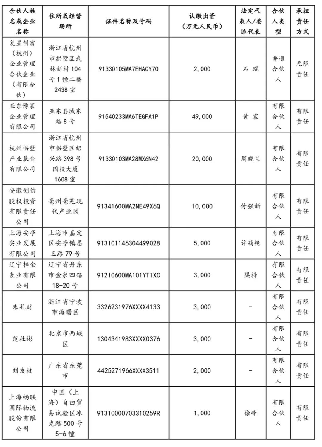 部分合伙企业/个人出资明细,截自豫园股份公告
