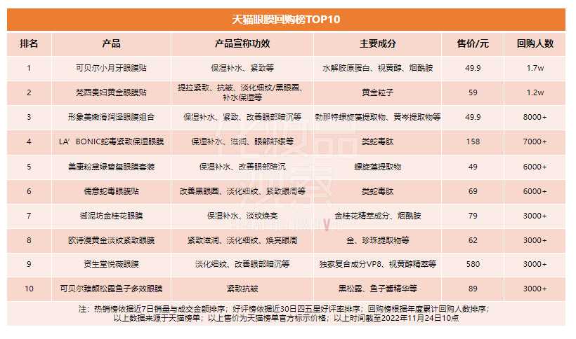 随着消费者对眼部护理认知度的提升,各平台的眼膜品类都呈现出高增长态势。