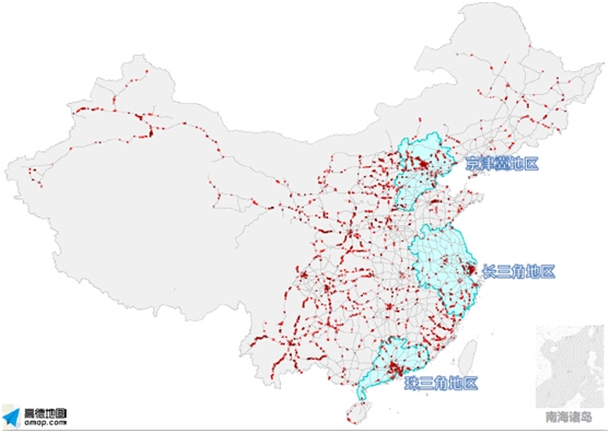 中秋节期间最拥堵区域是京津冀地区、长三角地区、珠三角地区,原因是有较多的较发达城市和旅游城市,其中最拥堵城市主要是北京、上海、广州、深圳、杭州、张家口、苏州等,城市内及周边高速会有严重拥堵。其次西南部地区的西安、成都、重庆、乌鲁木齐等城市也会出现拥堵。