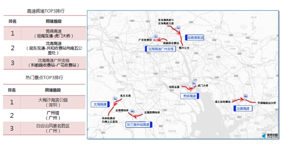 珠三角地区,9月14日下午部分高速路段易出现严重拥堵,尤其是广州周边出城方向高速,比如13点-23点莞佛高速、16点-23点沈海高速广州支线,拥堵最为突出。该地区排名前三的热门景点是大梅沙、广州塔、白云山。