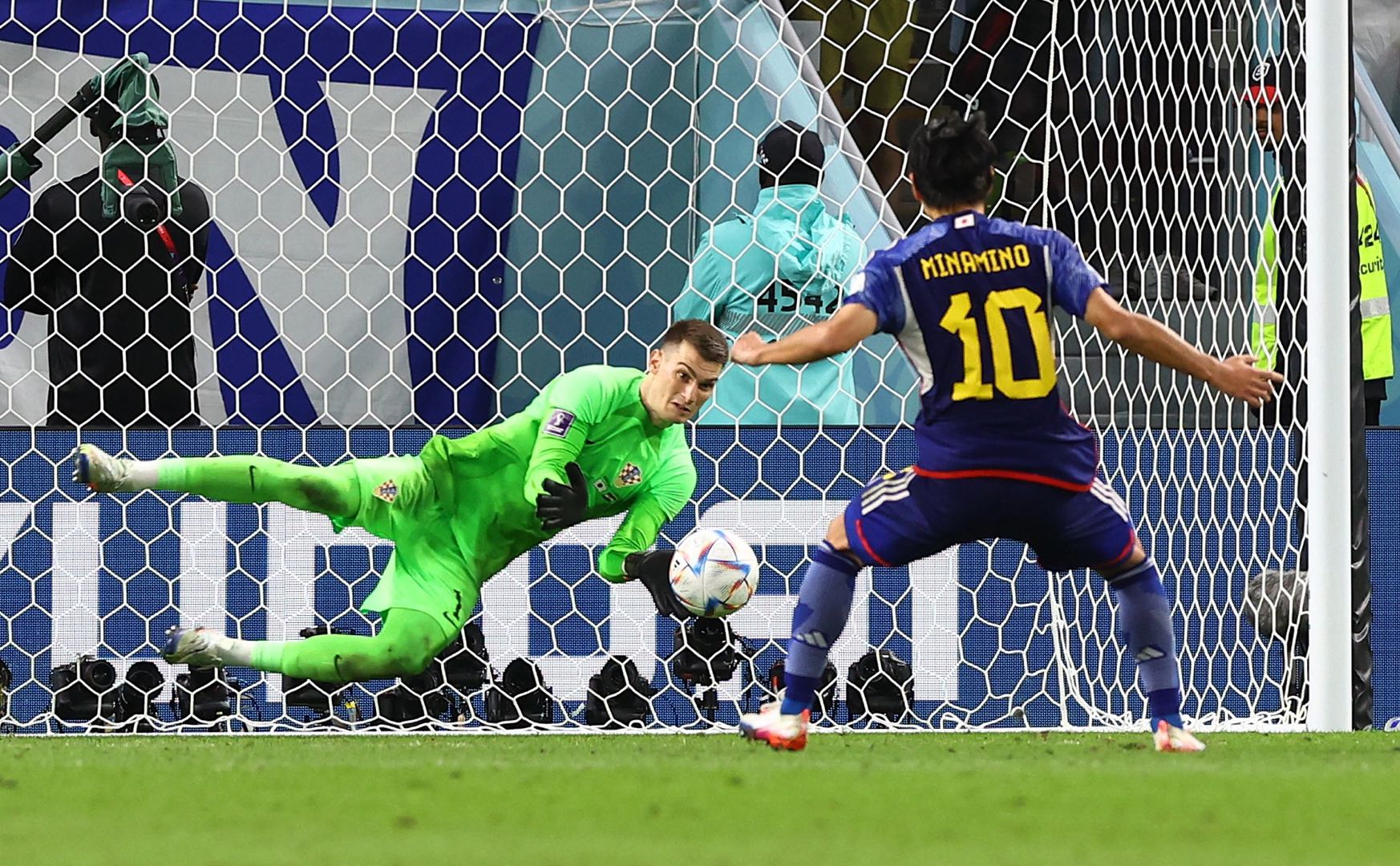 第2轮,三笘薰打球门左下角再次被扑,布罗佐维奇打中路得手,克罗地亚2-0。