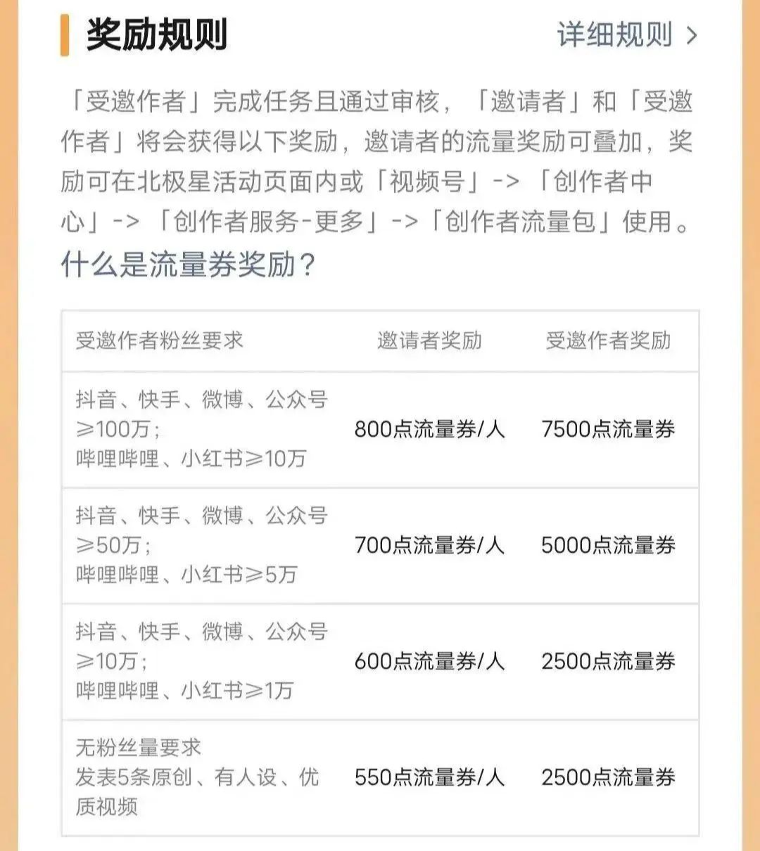 与此同时,视频号也在积极招募各平台博主入驻,并给予流量券激励。