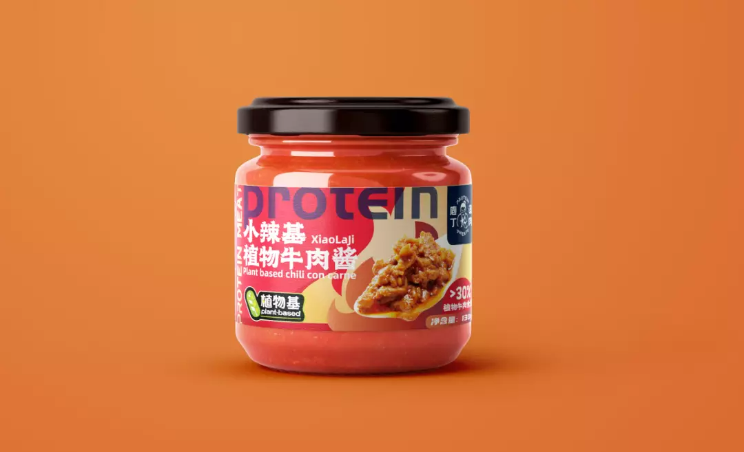 庖丁造肉推出的小辣基植物牛肉酱是一款区别于传统的新式辣酱。产品通体呈红色,令人即刻联想到鲜辣刺激的口感。其中的“牛肉粒”是以大豆蛋白和火麻仁蛋白为主要原料,结合拉丝蛋白技术和生物酶风味改良技术制成。辣酱则是以不少于30%的高蛋白的植物牛肉碎,与多种辣椒和香蒜炒制而成,蒜蓉鲜辣带劲,肉块粒粒分明,鲜香十足,解锁多样食用场景。