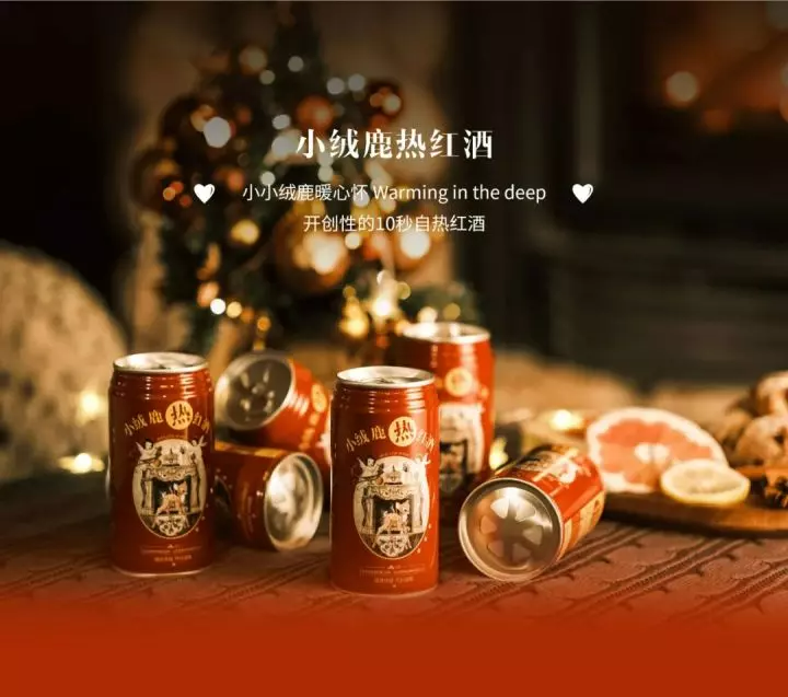 醉鹅娘推出的小绒鹿自热罐热红酒则暗藏“玄机”,在室温下,只需用力按压瓶罐底部,摇晃瓶身,再等待1-3分钟,便可从原先冰凉的瓶罐里喝到加热好的热红酒。