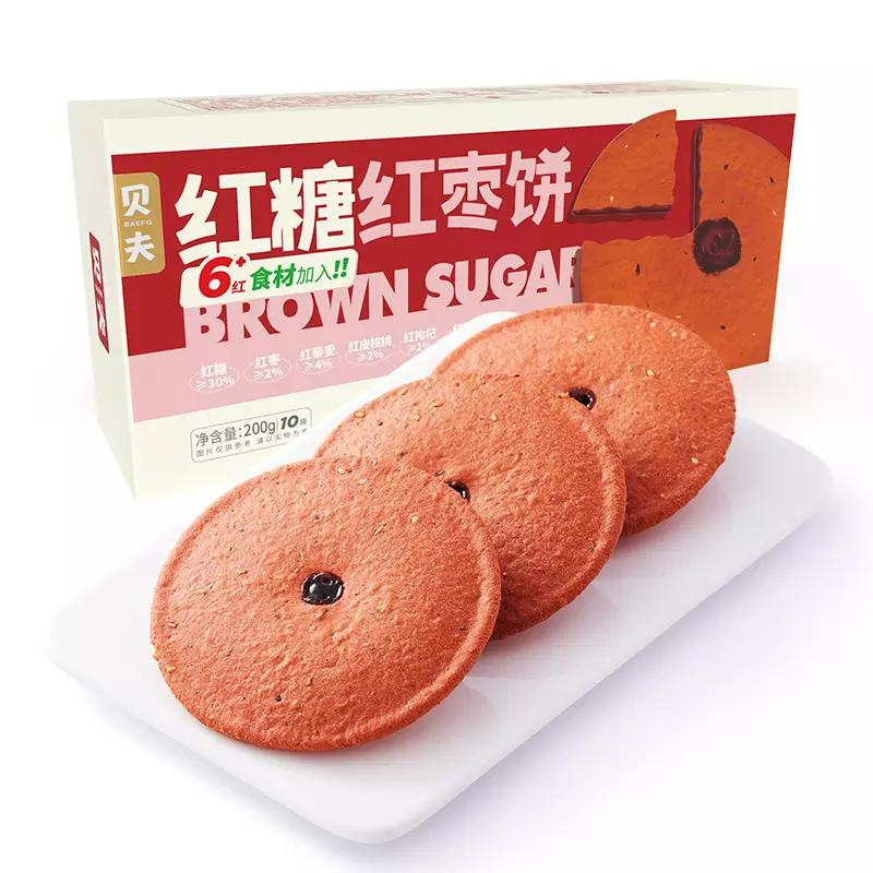 在烘焙品类,贝夫推出的红糖红枣饼,添加有红枸杞、红皮核桃、红豆、红枣、红藜麦、红糖,六种红色养生食材。以酥脆的粗粮外壳包裹香甜绵韧的红糖和有嚼劲的内陷,不失为冬日的暖心小点。