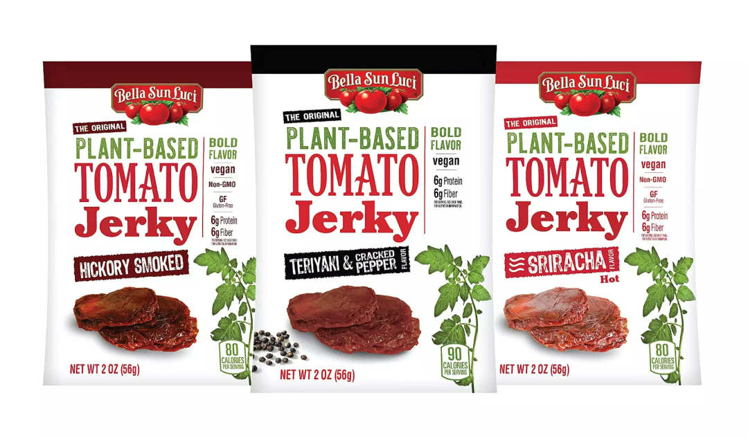 Bella Sun Luci Tomato Jerky是一系列素食牛肉干,主要由晒干的番茄制成。从外形上看,番茄本身的红色与牛肉干天然适配,同时,晒干番茄固有的质地和浓郁鲜味也可以很好的模拟牛肉干的韧劲和牛肉味。此外,每份30克的番茄牛肉干中含有6g蛋白质和纤维,并有照烧&胡椒,是拉差酱和烟熏山核桃三种口味。产品还获得2021年国际工匠植物肉干类金奖。