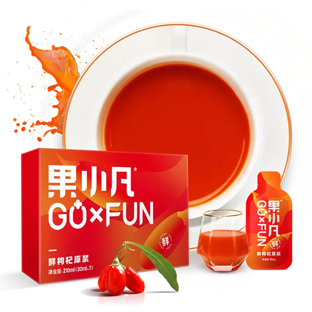 百瑞源推出了一款枸杞原浆,仅以新鲜枸杞为原料,采用瞬时高温杀菌工艺、高压微粒化技术等工序制作。与传统采用枸杞干果制成的复水原浆相比,原料更新鲜,营养更多,产品色泽也更鲜艳。每袋原浆中含380mg枸杞多糖,具有增加免疫力,抗氧化和延缓衰老,抗肿瘤,神经保护等功效。