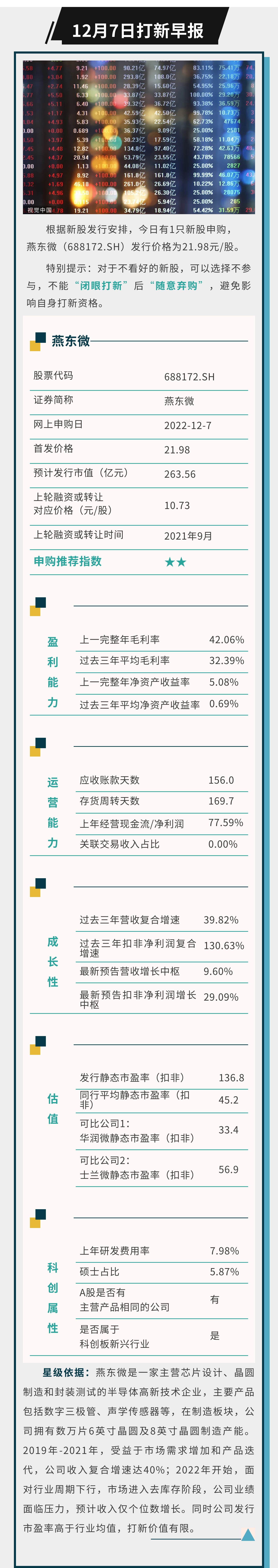 打新早报|集成电路企业燕东微今日申购,短期业绩面临下行压力