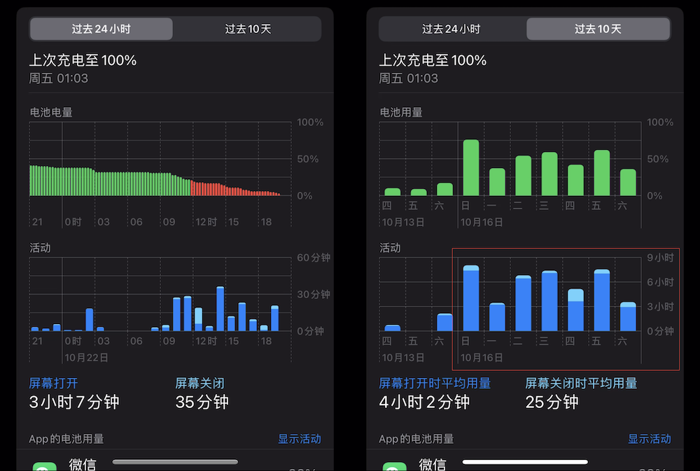 可惜iPhone的电池管理菜单不能显示从上一次充电到现在的总使用时间,以及对生于电量仍可用时间到预估,否则会更直观地体现手机的续航表现。