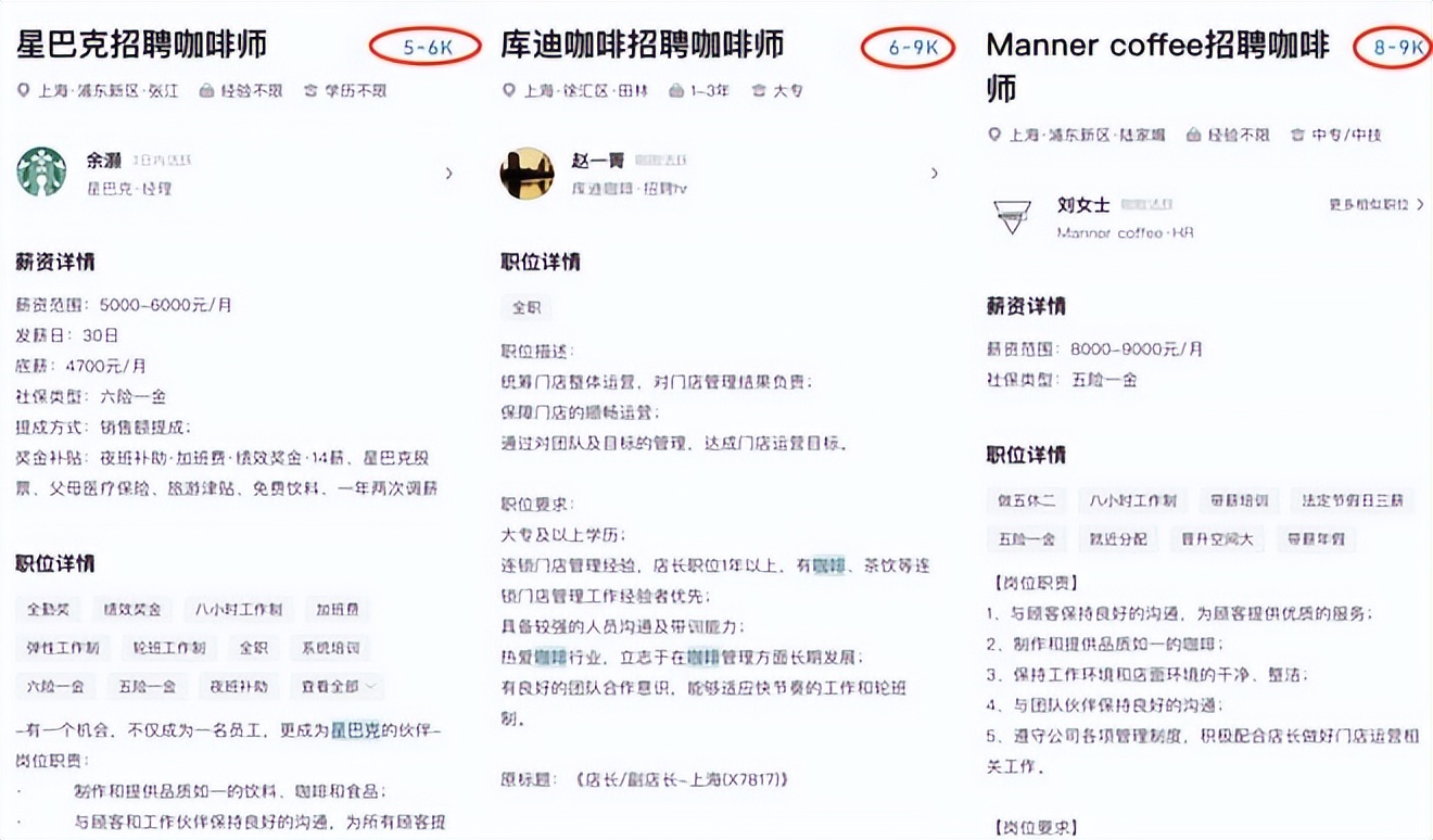 首先,前有瑞幸、后有库迪,这类企业大量且集中产生的用人需求,猛然打破了原有咖啡行业的人才供需平衡。给从业者带来的直接利好是,大幅提高了薪资福利待遇。