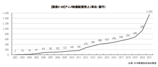 动画影像配信销售额推移 数据来源:日本动画协会调查