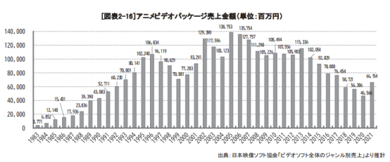 数据来源:日本动画协会根据ORICON娱乐市场白皮书2021制作
