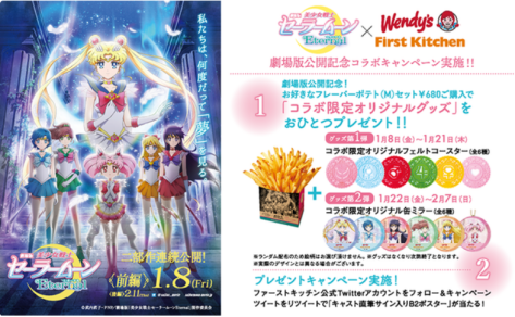 在初高中生中颇具人气的快餐店First Kitchen和Wendys First Kitchen,与剧场版《美少女战士Eternal》合作,活动期间在店内购买活动套餐即可获得限定原创周边。
