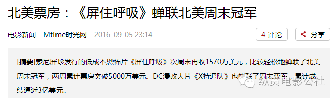 昨天,公社君提了一下,影史第二部蝉联北美周末票房冠军的恐怖片—《屏住呼吸》,