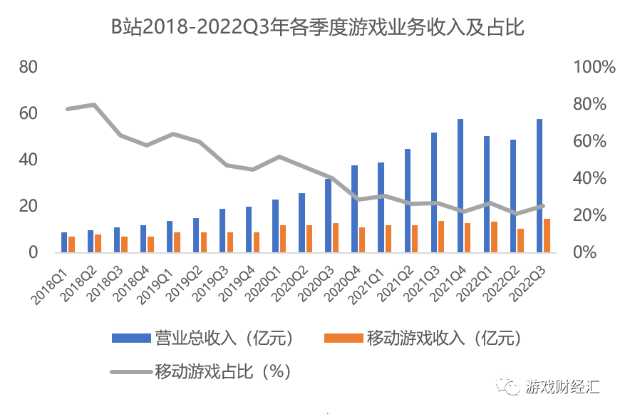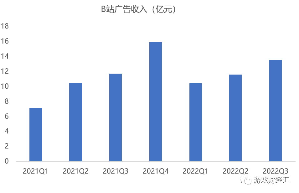 2021Q4,B站游戏收入约13亿元,而B站前三季度游戏收入分别为13.58亿元、10.46亿元和14.7亿元。