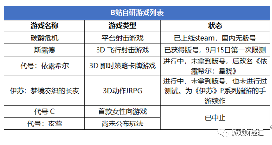 B站曾披露的6款自研游戏中,仅有《碳酸危机》一款上线,2款产品惨遭终止,还有3款游戏尚处于研发或者测试阶段。